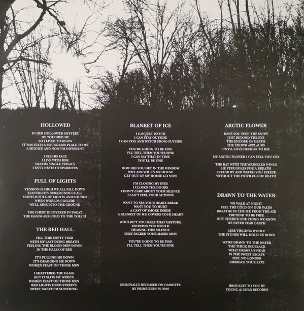 Kevin Czarnik is the artist behind projects such as Milliken Chamber, Prudence and Belladonna Grave. Sam Kubiak is a founding member of Forever Grey. Anna Schmidt performs live and helped record the latest album Sympathy Garden. In Mint condition. Clear blue vinyl edition. | ||